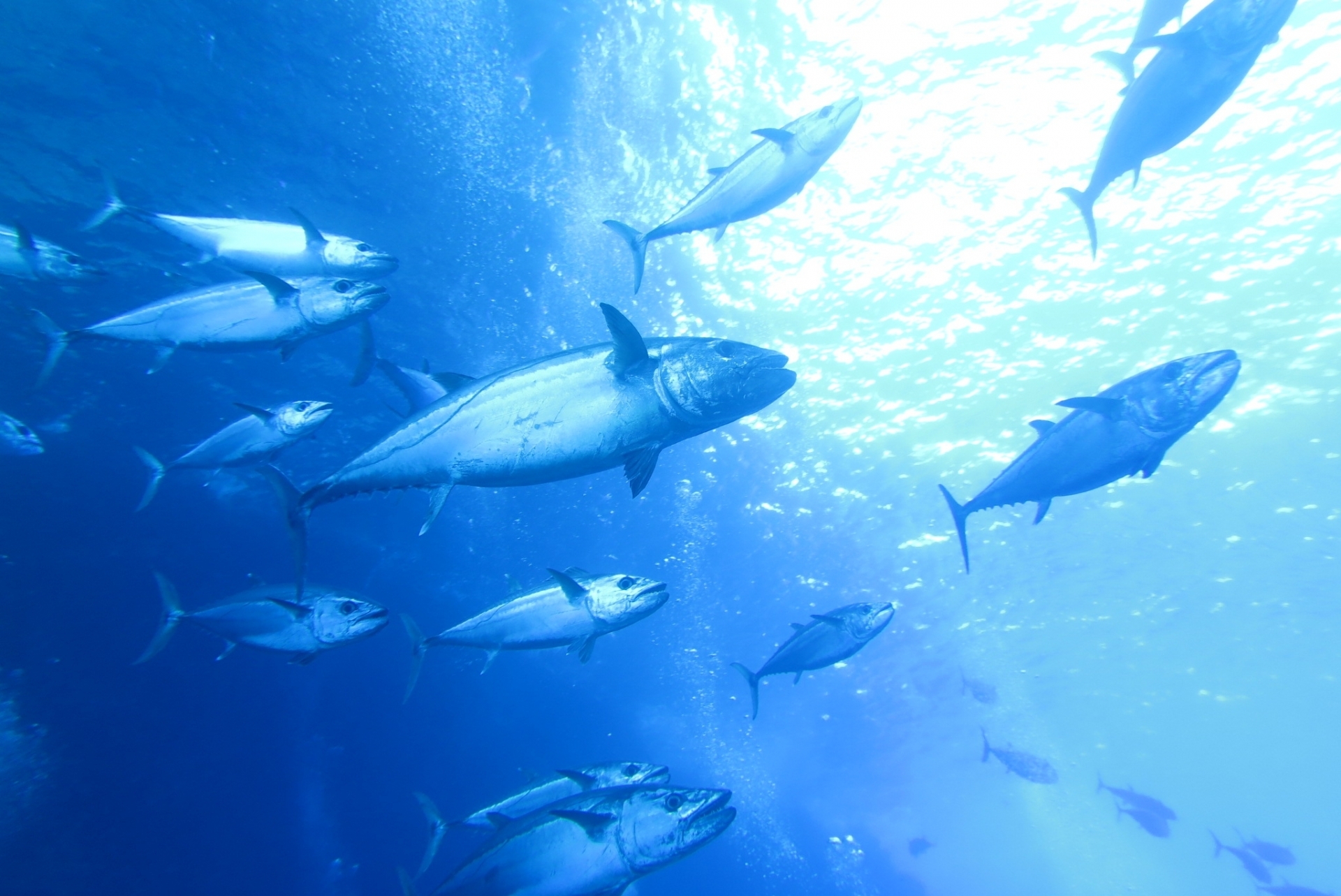 大海の恵みを求めて集まる魚たち